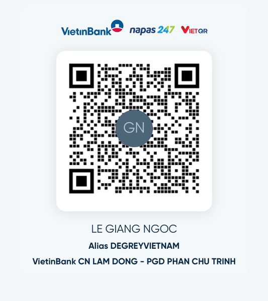 | THÔNG TIN TÀI KHOẢN DEGREY Số tài khoản : DEGREYVIETNAM Tên: LE GIANG NGOC Ngân hàng: Vietinbank chi nhánh Lâm Đồng