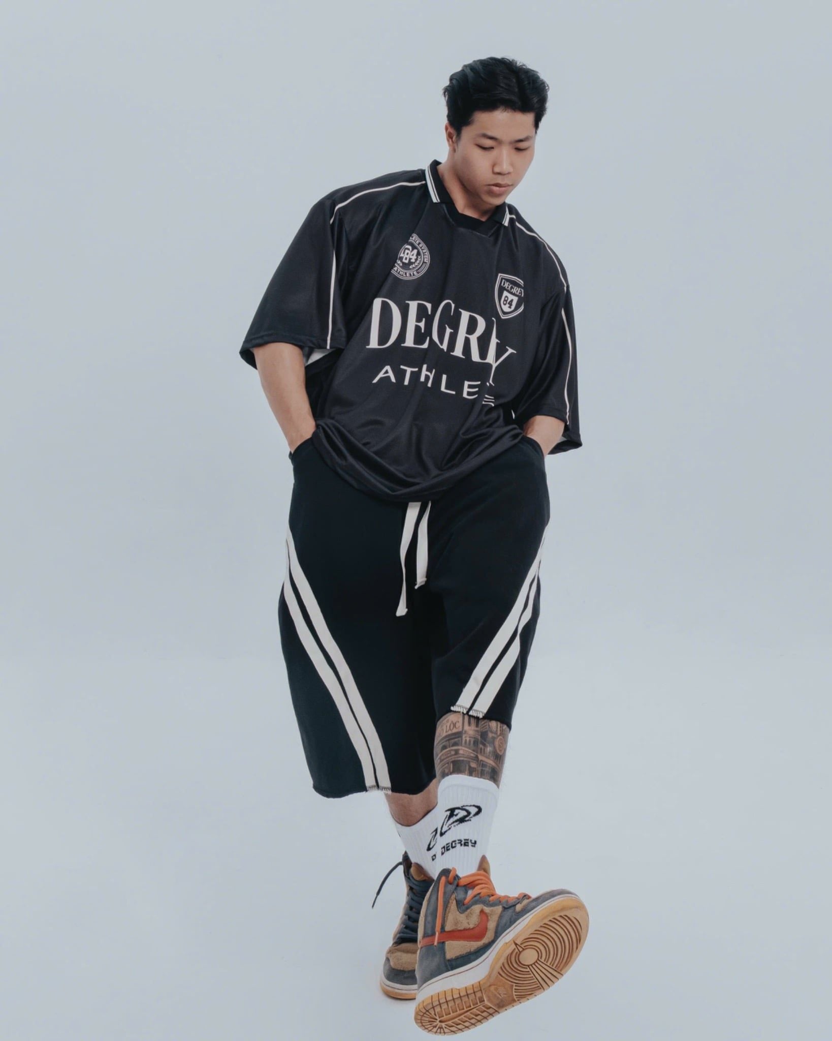 - Lưu ý chọn Size: Form áo có dáng vai ngang được thiết kế rộng rãi chuẩn Oversize. Mấy anh Upper to thì yên tâm không bị kích bắp vai. Quý khách KHÔNG CẦN trừ hao/tăng size, hãy chọn đúng size theo bảng số đo để có trải nghiệm mặc đẹp nhất.