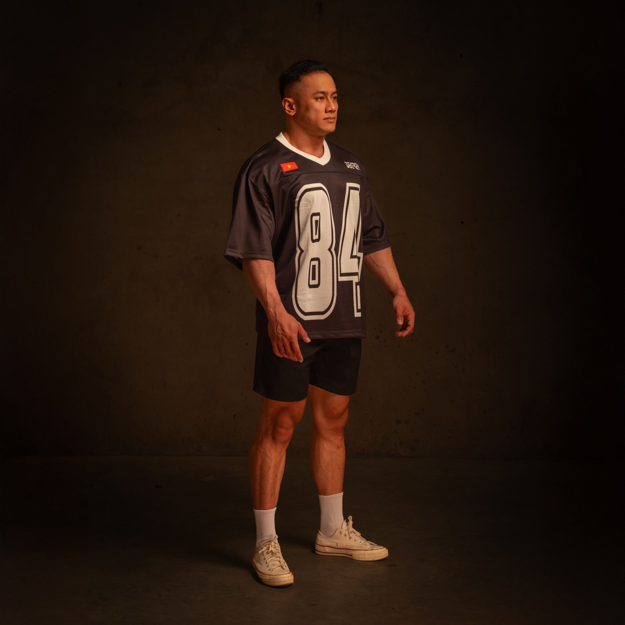Áo thun Degrey Jersey cổ tim màu đen thời trang thể thao - JERD