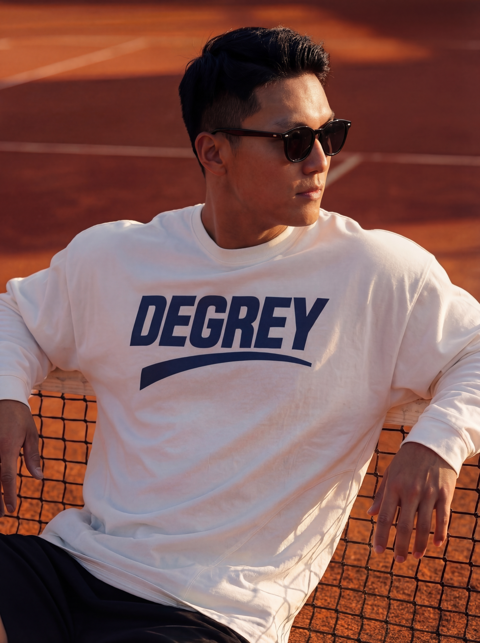 Áo Thun tay dài màu WHITE logo Degrey màu NAVY kiểu dáng rộng raglan - OVSTADATRANG