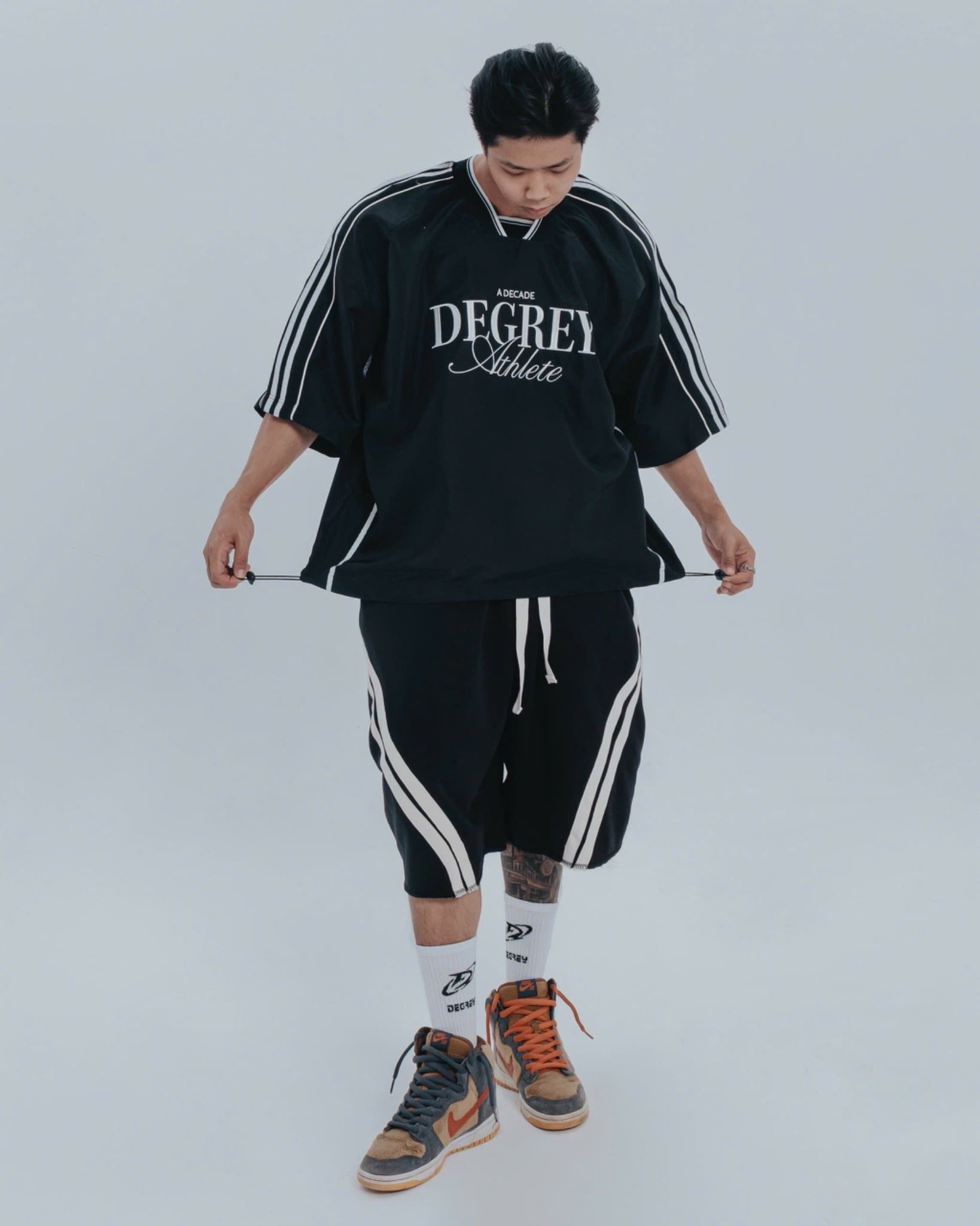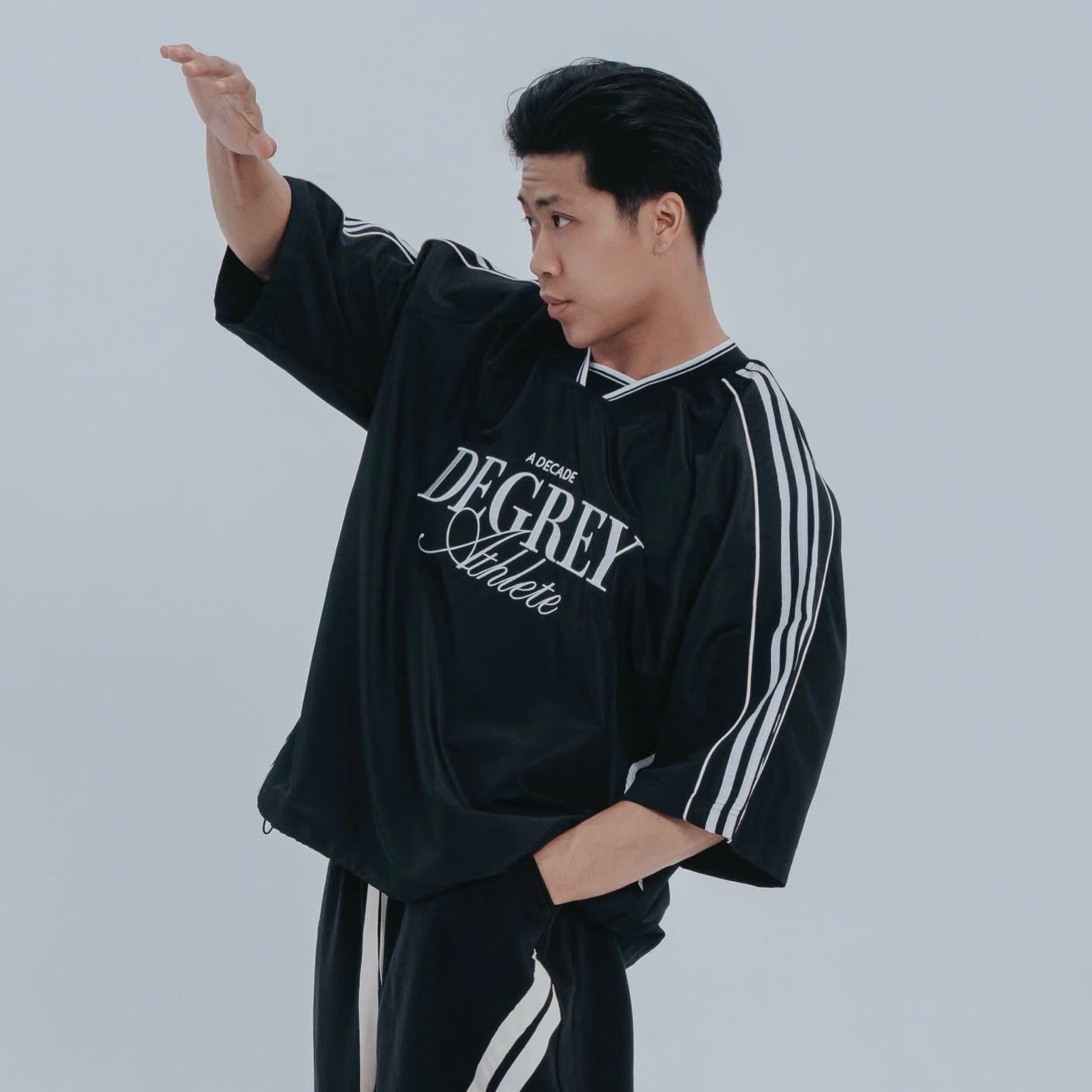- Lưu ý chọn Size: Form áo có dáng vai ngang được thiết kế rộng rãi chuẩn Oversize. Mấy anh Upper to thì yên tâm không bị kích bắp vai. Quý khách KHÔNG CẦN trừ hao/tăng size, hãy chọn đúng size theo bảng số đo để có trải nghiệm mặc đẹp nhất.